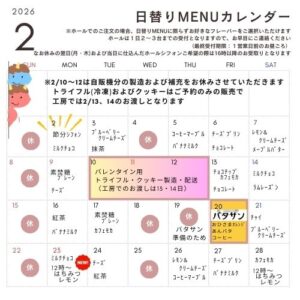 なお1週間より後で、かつご予約の無い日のフレーバーは変更する可能性があります。