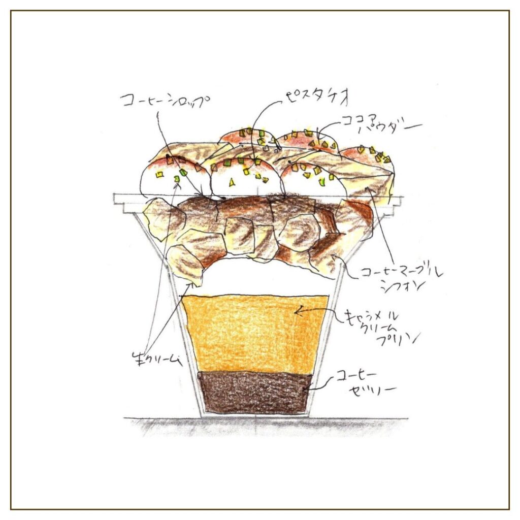 「食べる珈琲牛乳」をイメージして作ったコーヒーマーブルシフォンに