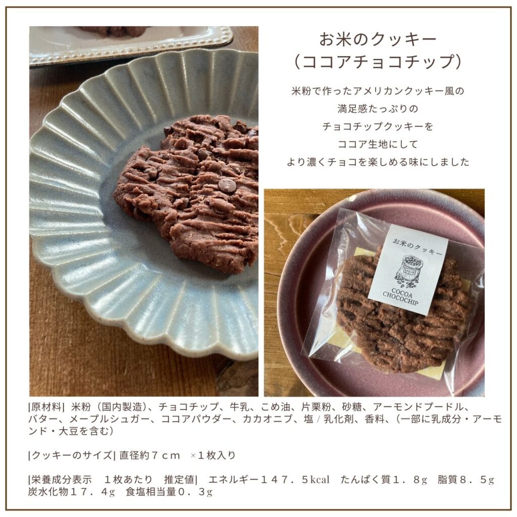 【お米のクッキー:ココアチョコチップ 270円/1枚】