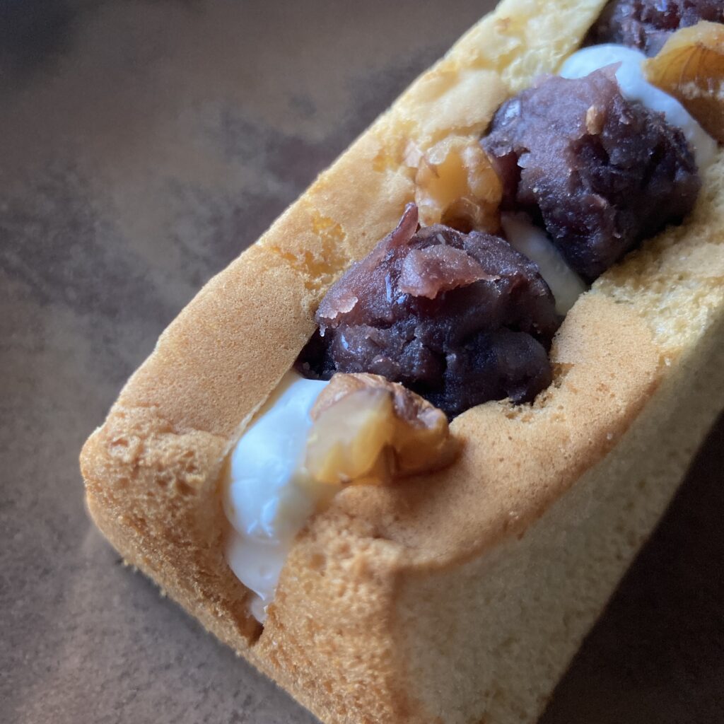②あんバタサン:粒あんとバタークリーム×素焚糖プレーンシフォン 430円