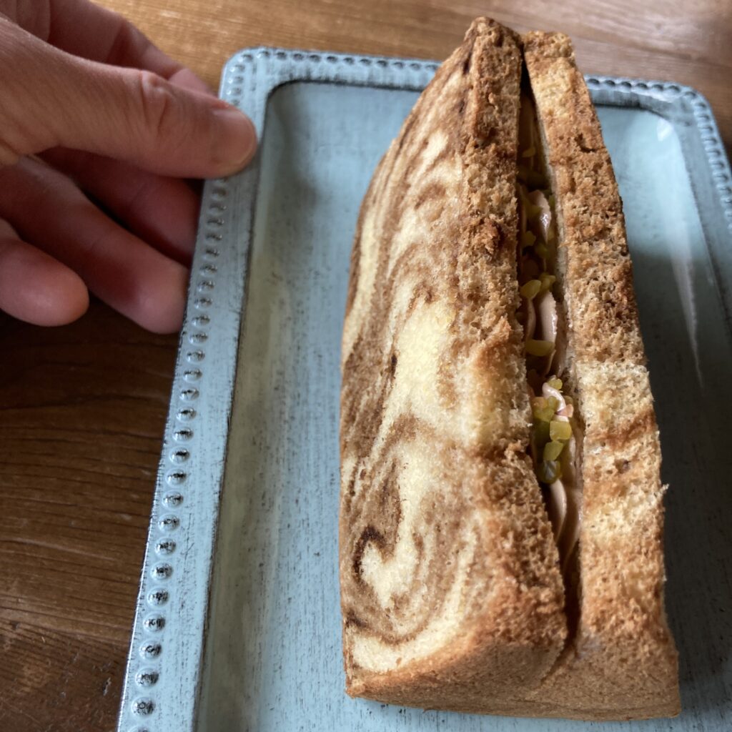 固いクリームのままでもお召上がりいただくことができますし、特にコーヒーバタサンに関しては「固いコーヒークリームが最高!」という方もいらっしゃるのでお好みにもよるのですが、クリームが柔らかいほうがあんこやシフォン生地、ジャムと絡みやすくなります。